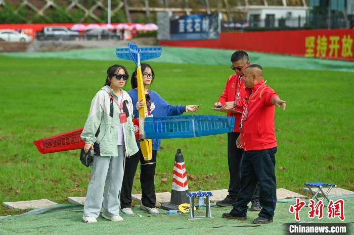10月14日,四川巴中,賽場上參賽選手正放飛參賽飛機。當日,2024年中國國際飛行器設計挑戰賽總決賽暨科研類全國航空航天模型錦標賽比賽在四川省巴中市拉開序幕,參賽選手將在賽場上一決高下。中國國際飛行器設計挑戰賽是目前中國唯一集飛行器設計、制造、飛行與控制于一體的面向全國高校和高中學生的賽事。中新社記者 劉忠俊 攝