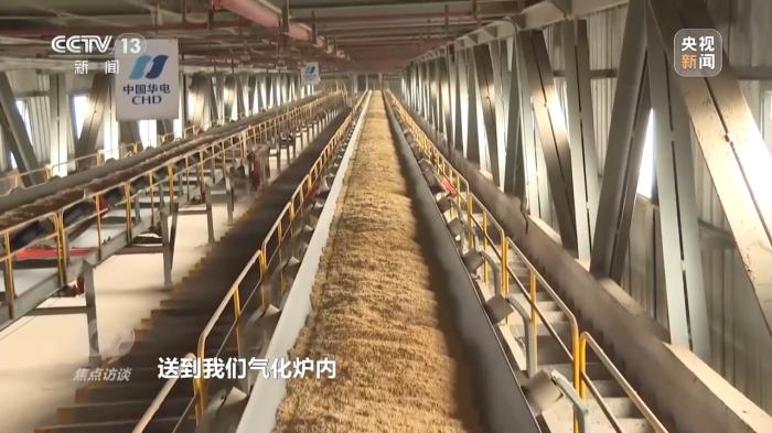 湖北華電襄陽發(fā)電有限公司生物質(zhì)運維部副主任 楊濤:生物質(zhì)燃料通過皮帶進(jìn)料口送到氣化爐內(nèi),產(chǎn)生一氧化碳、氫氣、甲烷等可燃?xì)怏w,然后通過管道將可燃?xì)怏w送到燃煤鍋爐內(nèi)與燃煤混合燃燒,實現(xiàn)了生物質(zhì)與燃煤機組的耦合發(fā)電。