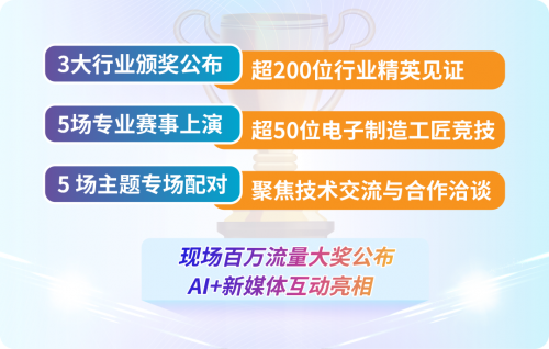此外超10位專家與達人將現(xiàn)場揭曉百萬流量獎,以AI+新媒體的創(chuàng)新形式互動亮相,深筑連接紐帶。展會還將舉辦5場專業(yè)賽事,超50位電子制造工匠同臺競技,全面展示表面貼裝、焊接、板級故障分析與維修、自動化、半導(dǎo)體、線束線纜等領(lǐng)域的精湛技藝。