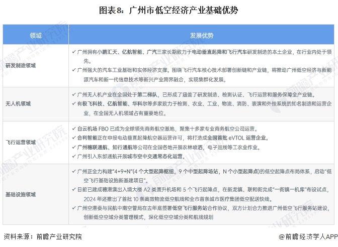 廣州低空經濟產業在研發制造、無人機、飛行運營和基礎設施保障方面均形成一定基礎,城市深厚的整車和零部件制造業也易于向低空飛行器生產鏈轉型。