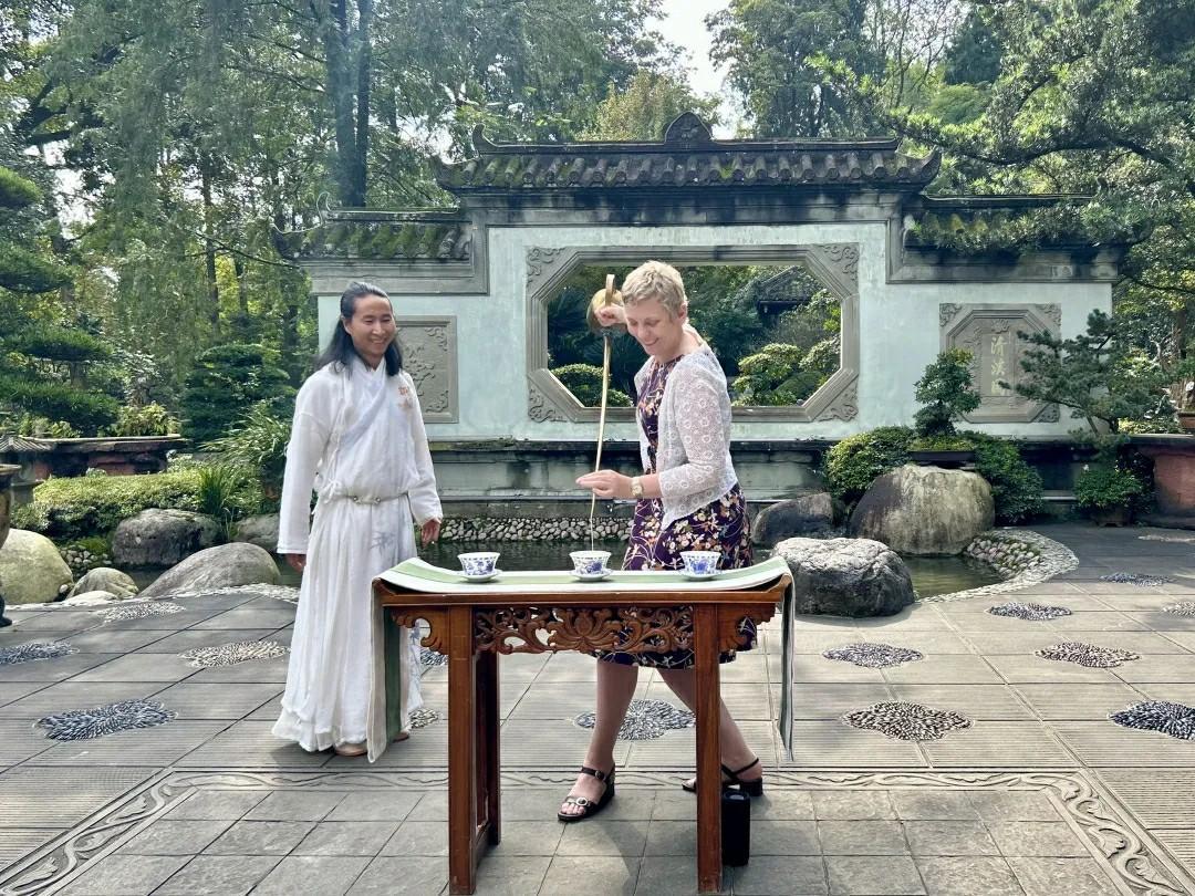 當天,邵美珍還體驗了長嘴壺茶藝、中醫藥材香囊制作、榪槎制作,對都江堰特色文化有了更全面、更深入的了解。