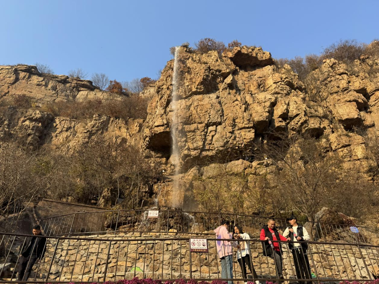 在遼陽市弓長嶺區人參谷景區的古崖棧道旁,一線飛瀑直下。棧道上,游人遠眺群山,數樹深紅出淺黃。曾經不為人知的小山溝,如今游客不斷。今年十一假期前,人參谷景區二期步道對外開放,登山步道延長至8.38公里,新增石梁飛瀑、飛來石、梨花臺、人參頂等眾多景點,為游客提供更沉浸式的登山體驗。