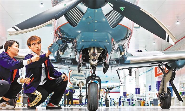11月3日,山東青島萬豐鉆石飛機制造有限公司,工人在裝配飛機。 張進剛攝(中經視覺)