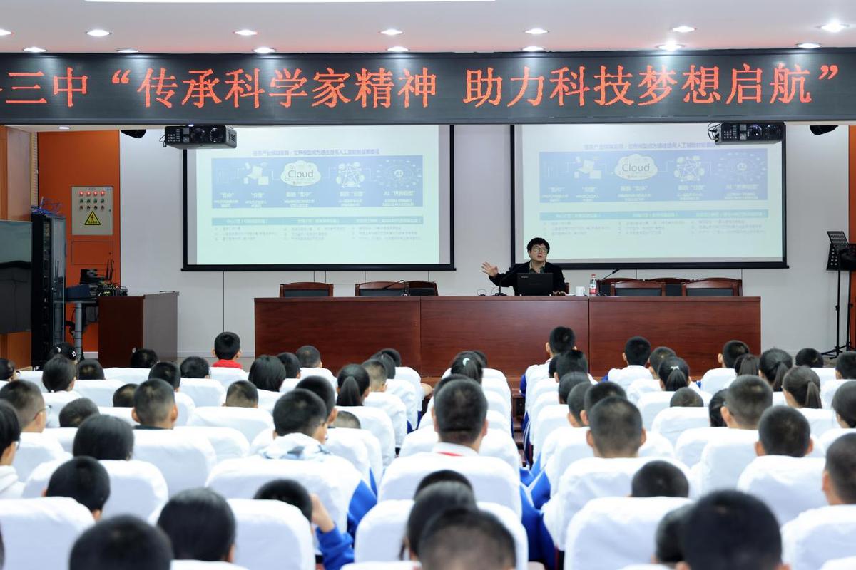 11月14日上午,“勇立潮頭 筑夢強國——弘揚科學家精神”主題活動走進北京市平谷區(qū)第三中學。應北京市科技教育中心(北京科協(xié)黨校)邀請,飛諾門陣董事長、清華智能網(wǎng)絡計算實驗室主任、格魯吉亞國家科學院外籍院士沈寓實博士為北京市平谷區(qū)第三中學200余名初中學生開展了主題為“傳承科學家精神,助力科技夢想啟航”的專題講座;本次活動得到了市區(qū)兩級教委的大力支持。沈寓實董事長圍繞科技與經(jīng)濟的歷史發(fā)展進深入剖析了當前全球科技創(chuàng)新的新趨勢和新特點,通過列舉科學家深耕產(chǎn)業(yè)發(fā)展的相關實例凸顯了科學家精神在推動科技產(chǎn)業(yè)發(fā)展中的核心地位與不可替代的作用。沈寓實院士還對平谷區(qū)第三中學師生們提出殷切期望:希望學生們將科學家精神內(nèi)化于心、外化于行,勇于肩負起科技創(chuàng)新的重任,爭做促進社會繁榮與發(fā)展的未來棟梁;希望學校持續(xù)強化科技教育體系,致力于培育更多秉持科學精神、才華橫溢的杰出人才,為社會的進步貢獻力量。