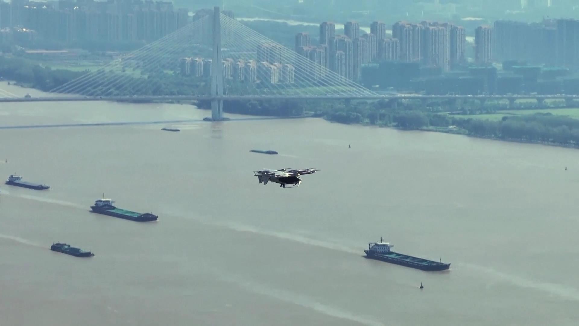 2024年8月1日,上海峰飛航空的盛世龍eVTOL(電動垂直起降航空器)完成跨長江首飛。視覺中國 資料圖