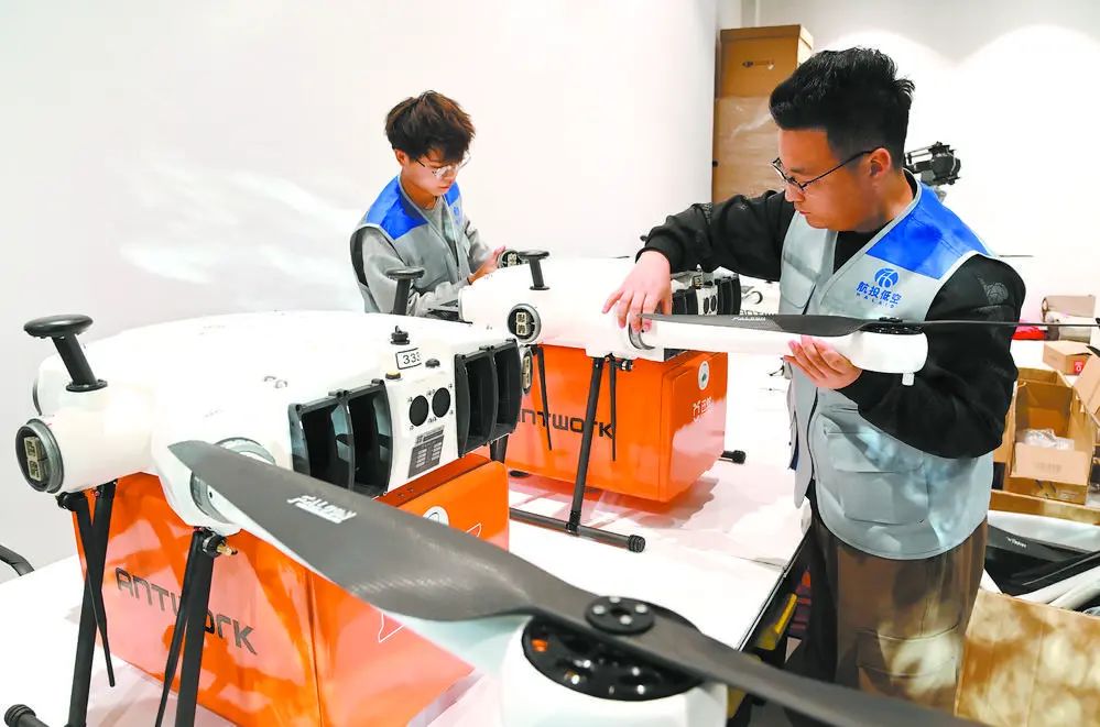 河北航投低空產業發展有限公司的技術人員在組裝無人機。
