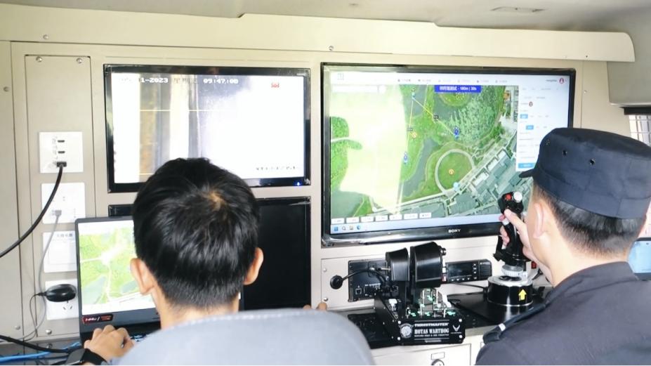 工作人員通過警用無人機實戰(zhàn)管控平臺操控無人機