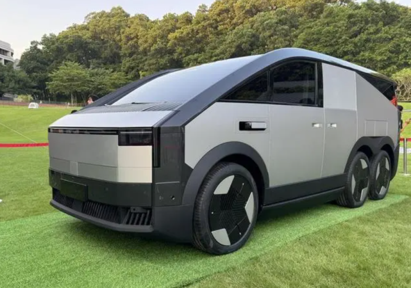 記者在超前品鑒會現場看到,“陸地航母”整體采用極簡、凌厲的賽博機甲設計語言,科幻感滿滿。整車長約5.5米,寬約2米,高約2米,可停入標準停車位,可駛入地庫,擁有C類駕駛證即可陸地駕駛。