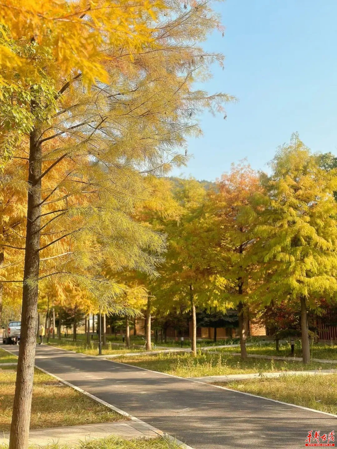 又是一年落羽杉盛開的季節,江永縣千家峒小木屋旁成排的落羽杉已經開始“換裝”,樹葉逐漸由綠色變為金黃色。在陽光灑落與微風輕拂之下,落羽杉的葉片如羽毛般輕盈飄逸,游人們穿梭于其中,恍若置身秋日的童話,這是落羽杉贈予蕭瑟秋季的限定浪漫。