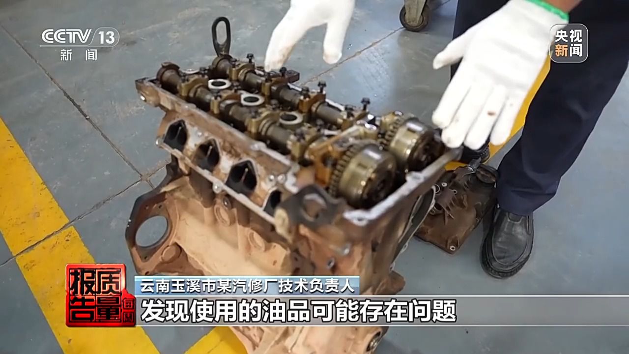 云南玉溪市某汽修廠技術負責人:這個發(fā)動機經(jīng)過我們拆開以后,發(fā)現(xiàn)使用的油品可能存在問題,發(fā)動機的積碳、油泥比較多,從燃燒室情況來講燃燒并不是很完整,可能是使用的機油產(chǎn)生的磨損過大,導致整個發(fā)動機報廢。