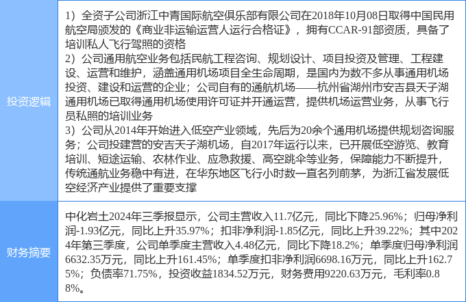 該股為通用航空,飛行汽車/eVTOL,低空經濟概念熱股,當日通用航空概念上漲2.96%,飛行汽車/eVTOL概念上漲2.7%,低空經濟概念上漲1.73%。