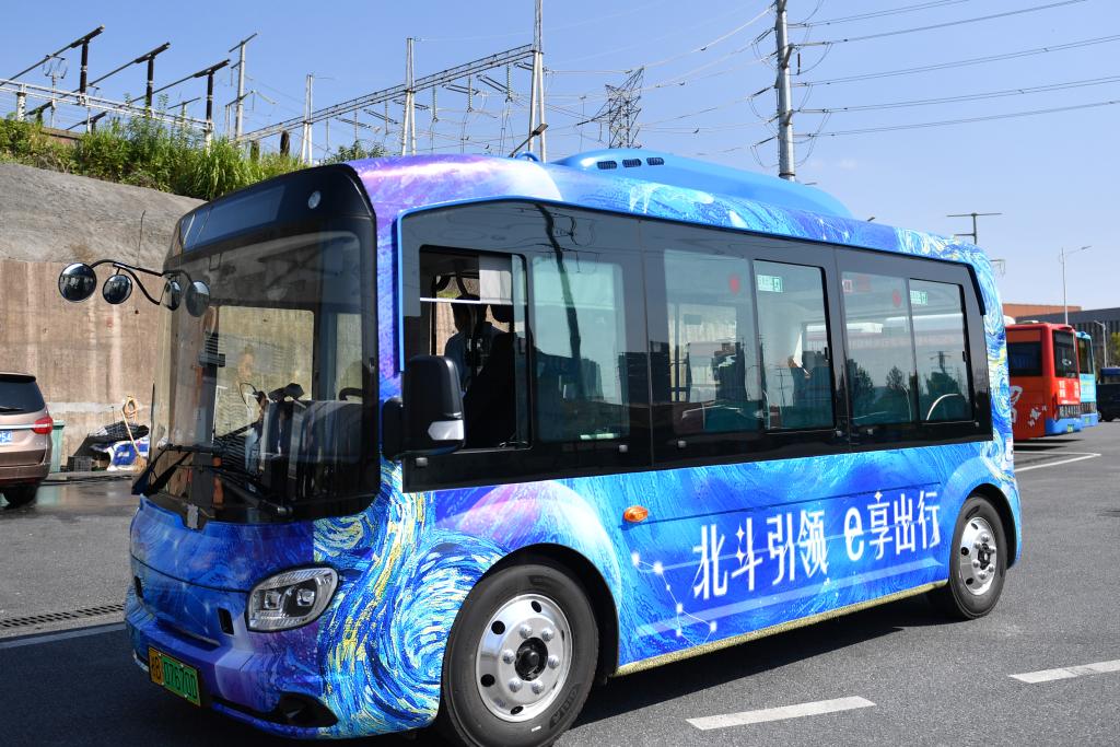 這是融合北斗、車(chē)聯(lián)網(wǎng)等多種技術(shù)的“云尚巴士”。新華社記者蘇曉洲 攝
