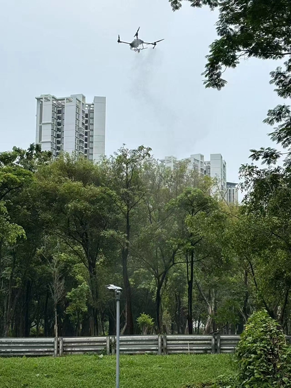 “傳統高空打藥方式不僅操作困難,還容易造成藥物浪費、環境污染。”深圳市綠化管理處工作人員介紹,無人機消殺高效又精準,能夠幫助遏制朱紅毛斑蛾等防治難度大的病蟲害,保護城市綠化成果。