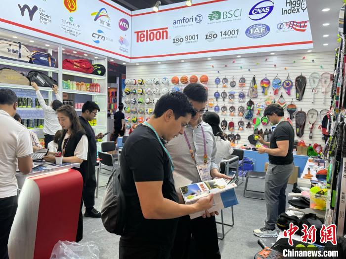 浙江天龍網(wǎng)球股份有限公司副總經(jīng)理李國華介紹:“我們帶來了近年來在歐美地區(qū)興起的匹克球產(chǎn)品,這款融合了多項球類運(yùn)動元素的新潮運(yùn)動產(chǎn)品受到了不少海外客戶的青睞。”