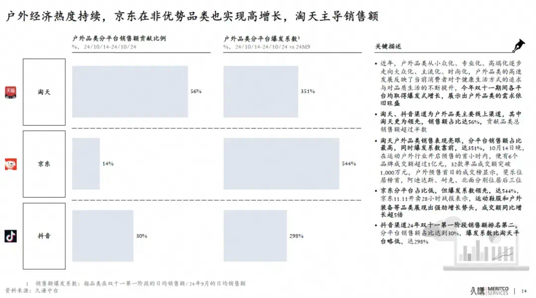 久謙中臺(tái)最新數(shù)據(jù)顯示,戶外類目在天貓雙11開售第一階段,貢獻(xiàn)了56%的市場(chǎng)份額。