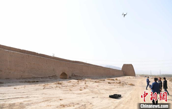2020年4月中旬,甘肅嘉峪關,工作人員用無人機對嘉峪關長城周邊的賦存環境進行了全方位巡察拍照。(資料圖)楊艷敏 攝
