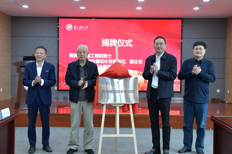 錢七虎、陸繼軍、姜朋明、龔瑞良共同為蘇州國動防護研究院揭牌。
