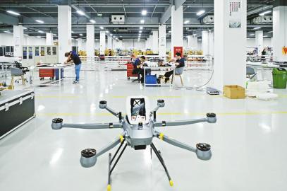 6月28日,成都縱橫自動化技術股份有限公司的技術人員在無人機生產線上組裝新型號無人機。