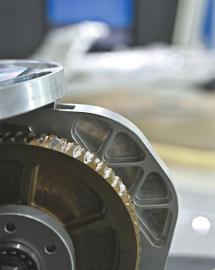 8月2日,在成都高新區沃飛長空全球總部拍攝的其擁有自主知識產權的全傾轉機構的齒輪,這項技術實現了載人無人機角度控制更精細。