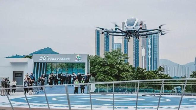 2023年,億航智能自主研發的EH216-S無人駕駛載人航空器在廣州起飛。