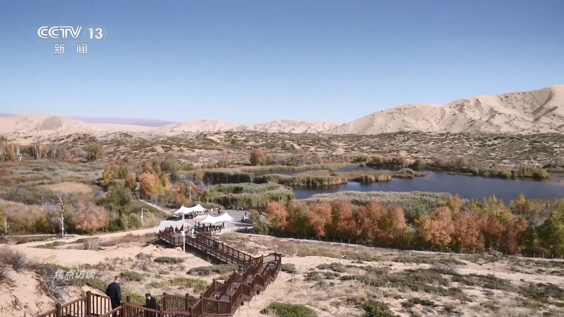 “十一”黃金周,各地景區再次迎來客流高峰。在新疆北部北屯市的白沙湖景區,沙漠綠洲的秋日風情,給人留下了非同一般的感受。