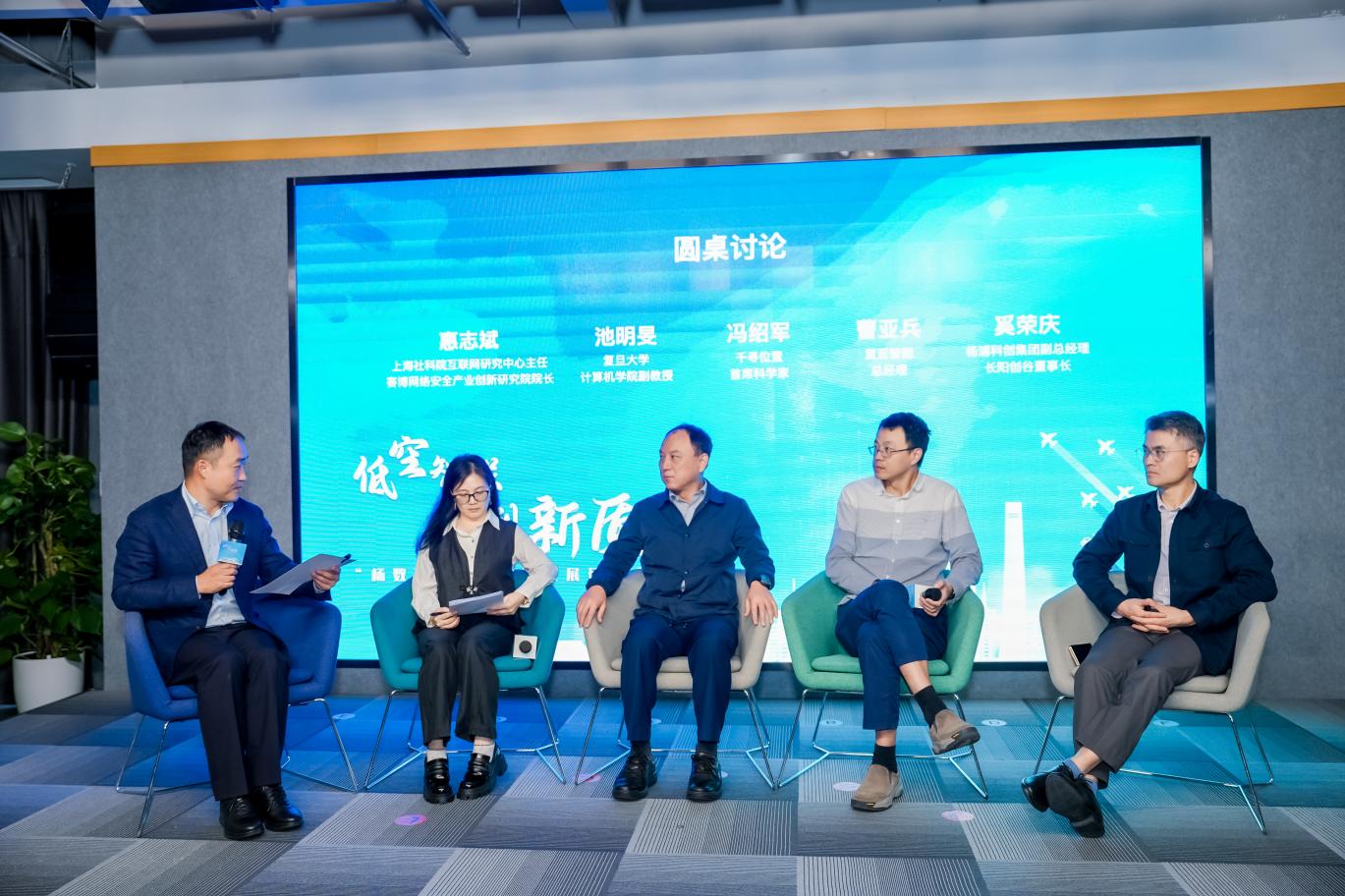 在圓桌討論環節,上海社科院互聯網研究中心主任、賽博研究院院長惠志斌,復旦大學計算機學院副教授池明旻,千尋位置首席科學家馮紹軍,復亞智能總經理曹亞兵,楊浦科創集團副總經理、長陽創谷董事長奚榮慶等嘉賓,圍繞低空經濟領域的技術成果、應用案例及前瞻策略開展深入討論,并對楊浦發展低空產業應重點發力的環節領域提出了對策建議。