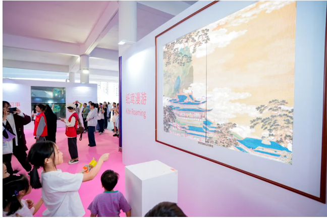 在不遠處的AI體驗區,到場觀眾還能體驗“賽博風箏”《紙鳶漫游》、AI鋼琴、無界魔鏡、AI繪圖工具等。