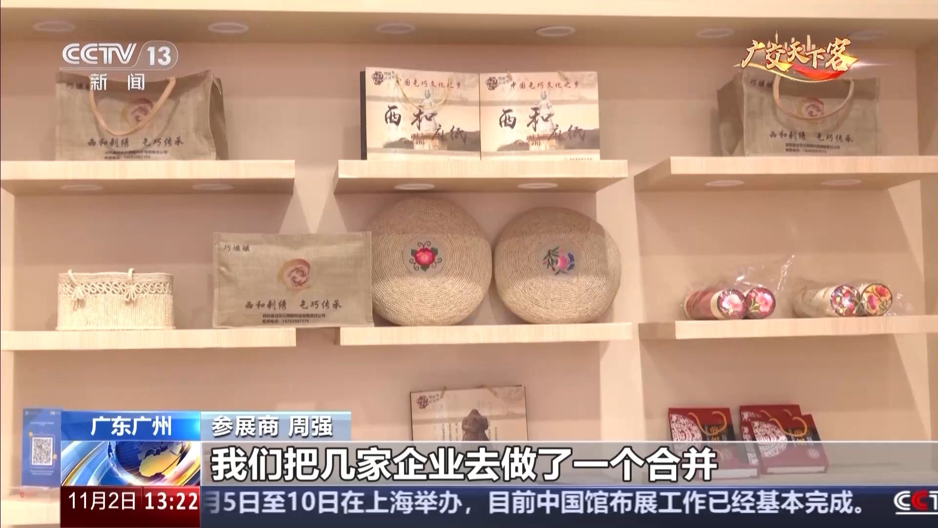 參展商 周強:我們是來自于一家甘肅省隴南市西和縣的企業。我們把幾家企業做了一個合并,把所有的農產品或者手工制品合并在一個展位上面,更好地拿訂單、拓市場。