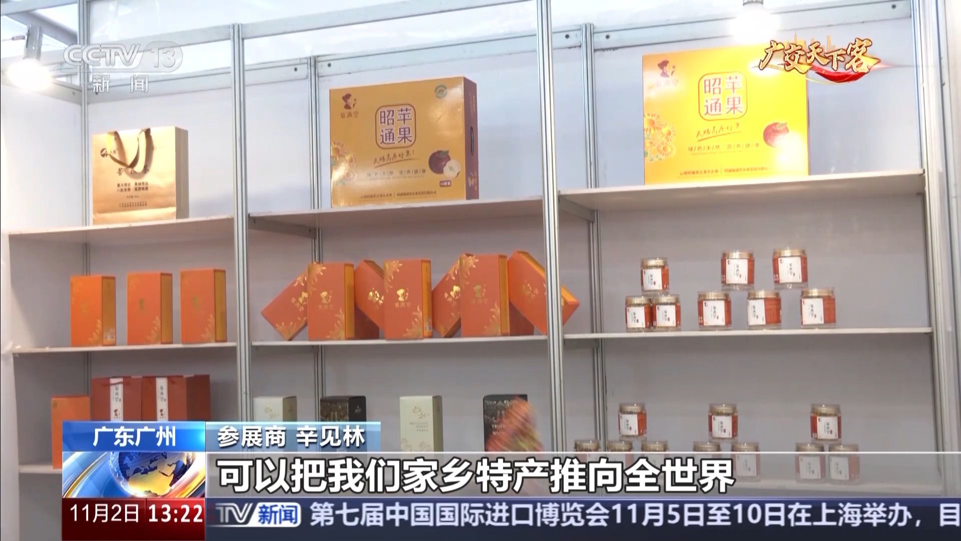 參展商 辛見林:我們是來自云南昭通的一家企業,這一次帶著我們云南昭通的特產來參加廣交會,可以把我們家鄉特產推向全世界。