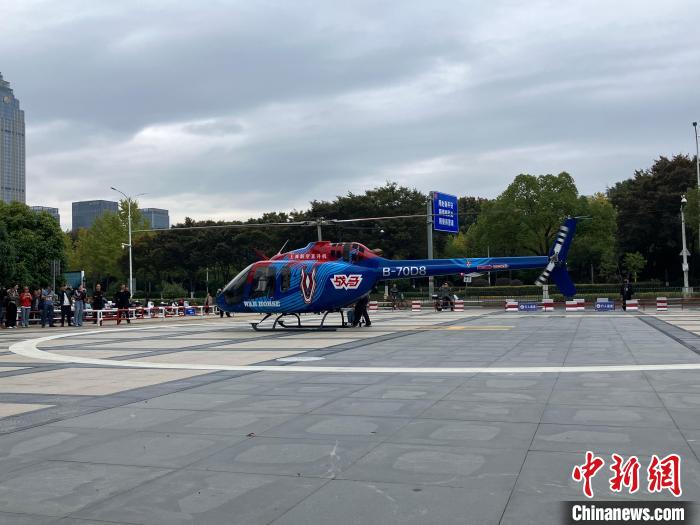 中新網嘉興11月14日電(胡豐盛)11月14日11時許,浙江省海寧市客運中心北廣場,伴隨著一聲令下,一架直升機緩緩起飛,搭載著乘客,飛往上海浦東,海寧——浦東直升機航線正式開通。