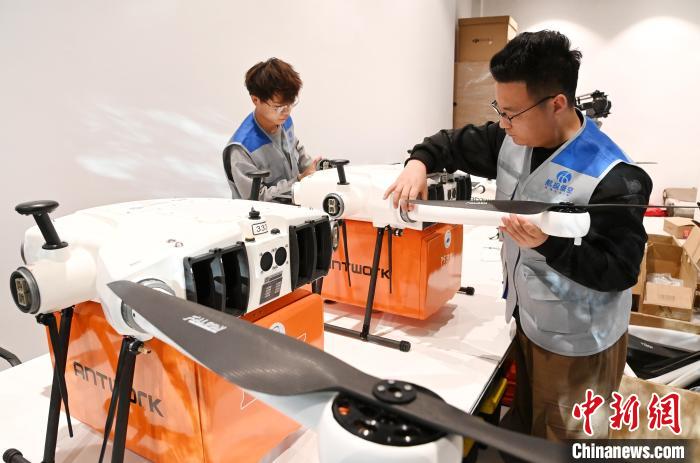 11月29日,河北航投低空產(chǎn)業(yè)發(fā)展有限公司工作人員正在組裝無人機。張震 攝