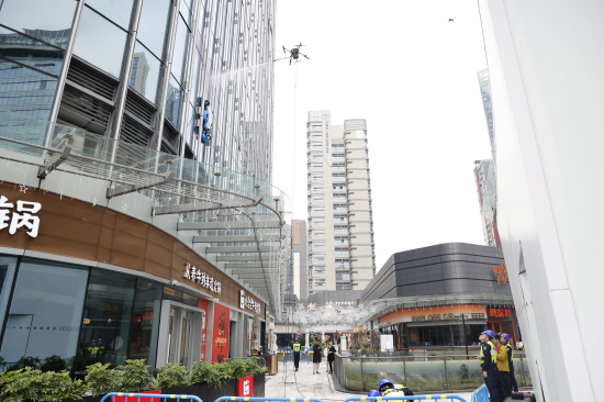 12月9日上午,深圳龍崗區(qū)仁恒夢(mèng)創(chuàng)廣場(chǎng),一場(chǎng)無(wú)人機(jī)與“蜘蛛人”的清潔競(jìng)賽吸引了大量市民觀看:無(wú)人機(jī)負(fù)責(zé)噴水和泡沫,機(jī)器人根據(jù)指令對(duì)高層玻璃進(jìn)行擦拭;另一邊,“蜘蛛人”身著專業(yè)的安全裝備,在摩天大樓的外墻上攀爬游走。最終,科技戰(zhàn)勝了勇氣,無(wú)人機(jī)團(tuán)隊(duì)在時(shí)間上節(jié)約了一半的時(shí)間。