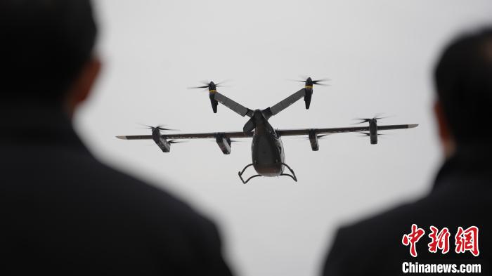 2023年12月29日,沃飛長(zhǎng)空AE200型號(hào)電動(dòng)垂直起降飛行器(eVTOL)適航技術(shù)驗(yàn)證機(jī)首飛,圖為該驗(yàn)證機(jī)正面。(沃飛長(zhǎng)空供圖)