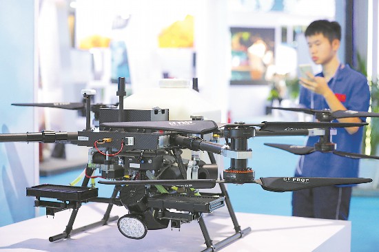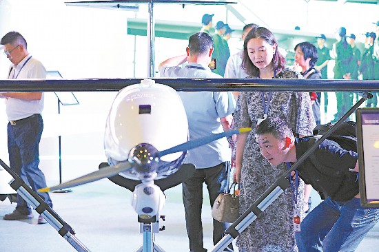 懸停在空中的無人機,吸引了參觀者的目光