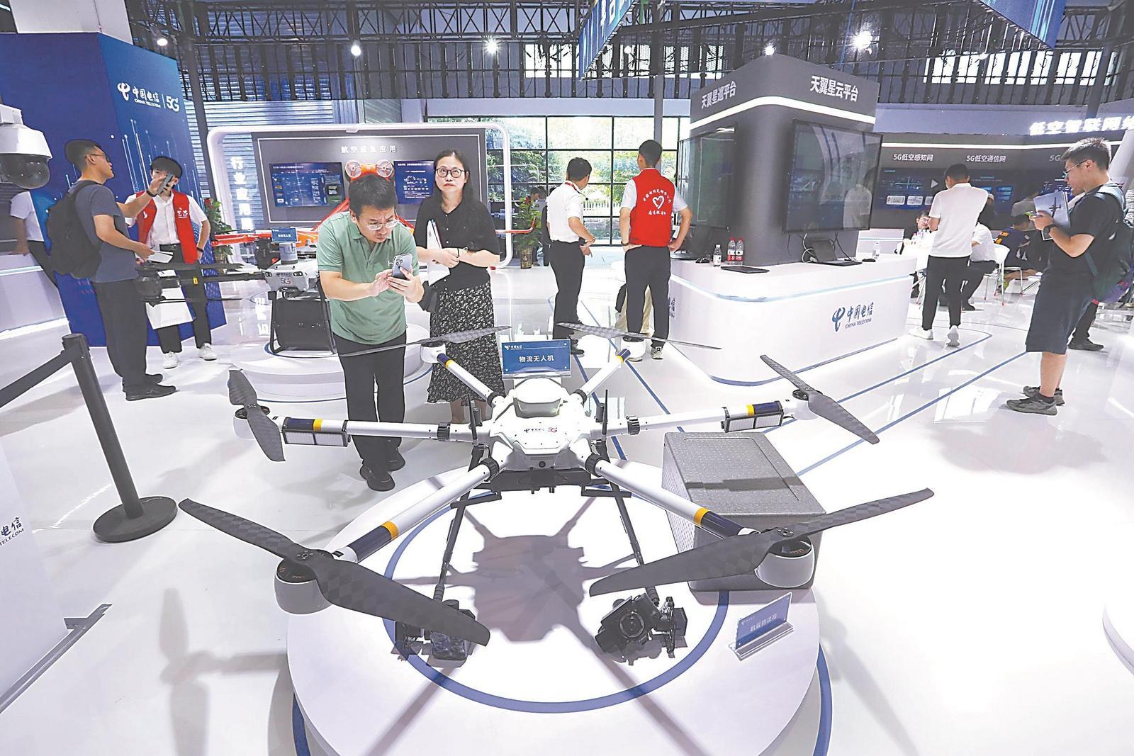9月6日,蕪湖市弋江區蕪湖宜居國際博覽中心內,在“2024低空經濟發展大會”新質生產力創新成果展上,觀眾參觀展覽。(王玉實攝)