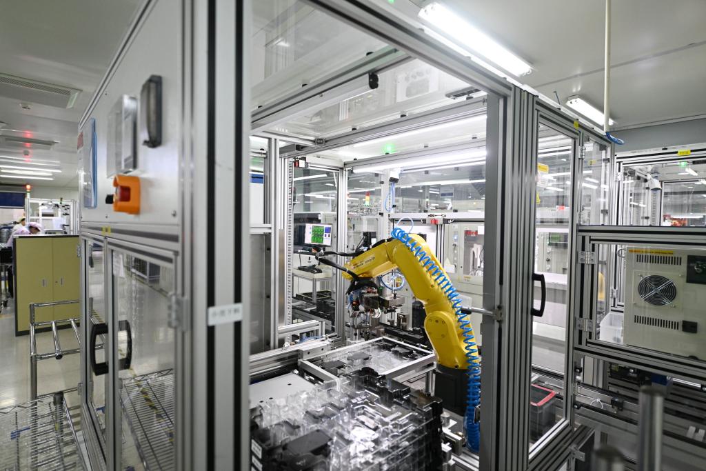 北京經(jīng)緯恒潤科技股份有限公司天津工廠車間內(nèi)的自動化生產(chǎn)線。(新華社記者 李然 攝)