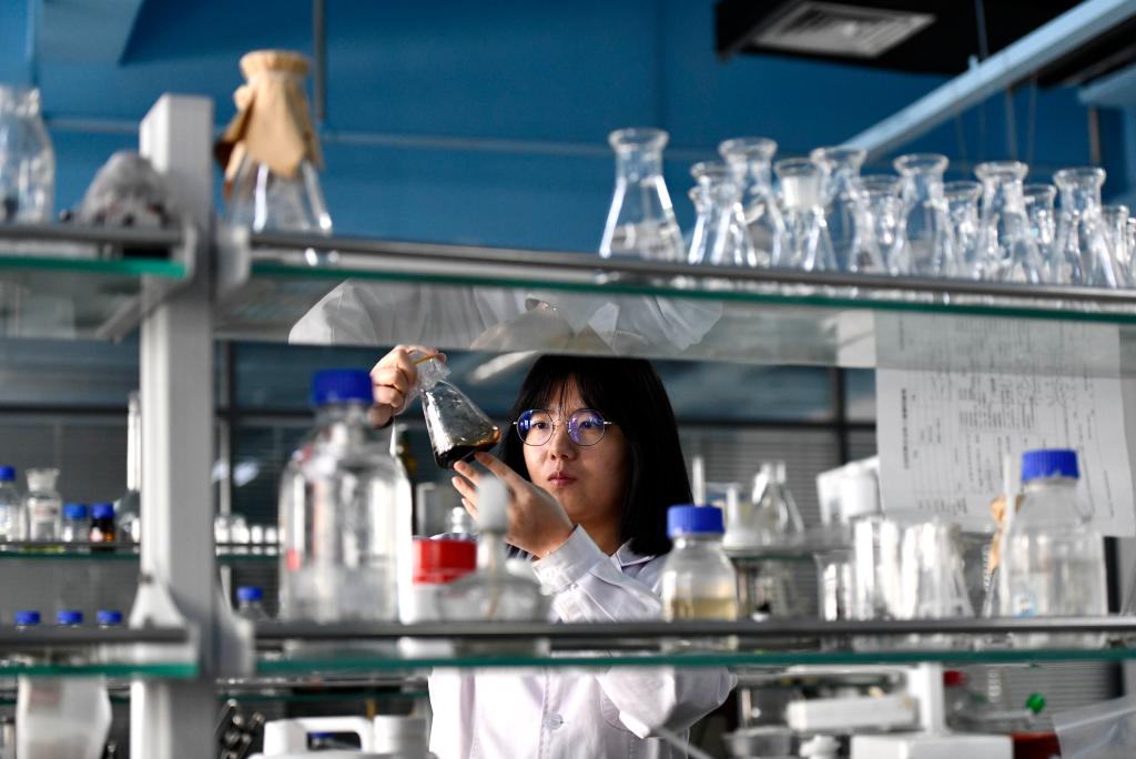 天津濱海-中關(guān)村科技園的天津慧智百川生物工程有限公司內(nèi),工作人員正在做實驗。(新華社記者 趙子碩 攝)
